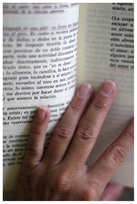 Así lee la muchacha, a destiempo, atenta a todo cuanto sucede a su alrededor y, sin embargo, con el café frío sobre la mesa. ¿Y qué lee? Nos preguntamos. ¿Qué lee con sus anteojos, con el cabello remetido detrás de las orejas, con la nariz olfateando y los dedos, esos dedos, sus dedos largos de pianista, prensando el papel hasta dejar huella? Supongo que la vida de otro. La vida de otro en París, la de más allá, la del hombre del vino y la de las campanas de la iglesia de Saint-Germain-des-Prés. La vida del que está por venir, del que traerá con él el verano y el amor, ese amor cálido que se intuye en el aire, que flota acariciando su nuca.
